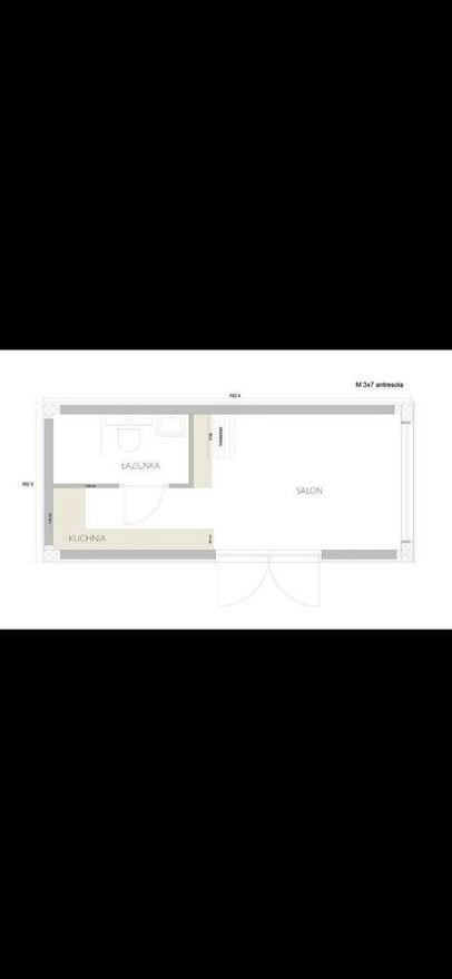 modułowy o powierzchni 30 m² (wymiary 7 m x 3 m) z antresolą,